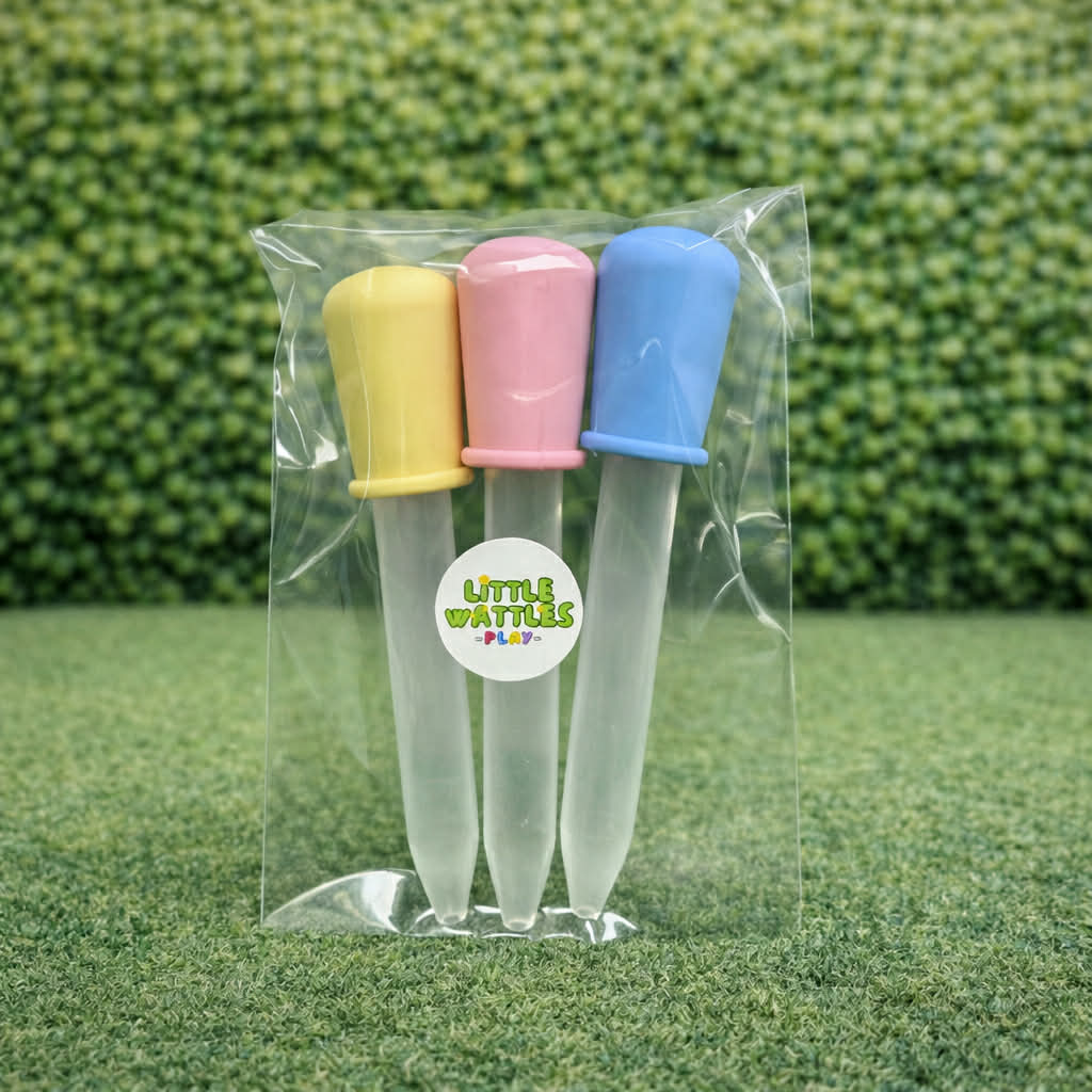 Our easy squeeze Potion Droppers are perfect for little hands learning to control their movements. Squeezing and releasing the dropper helps strengthen fine motor skills, hand muscles and coordination while creating the perfect bubbling potion.